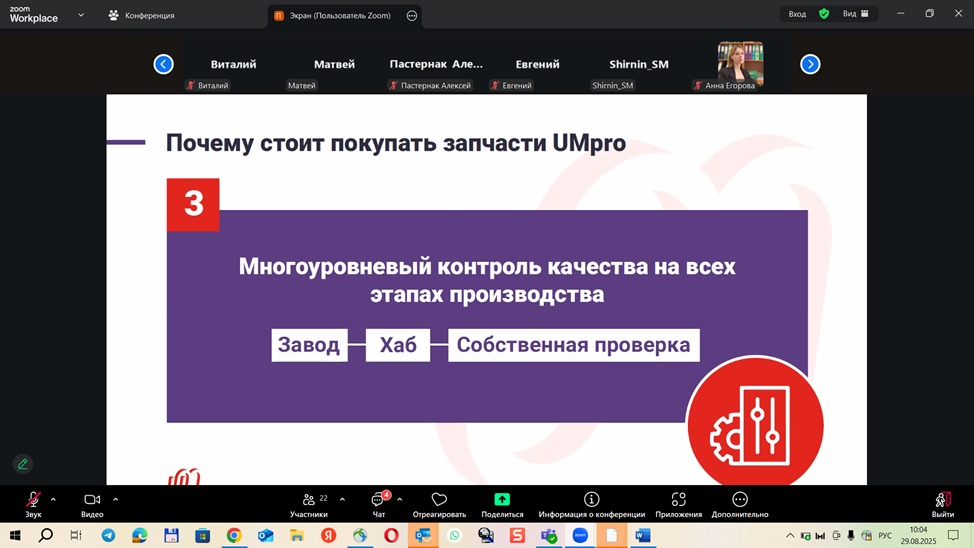 Компания продолжит практику подобных образовательных мероприятий для укрепления партнерских отношений и повышения продаж запчастей UMpro.